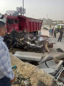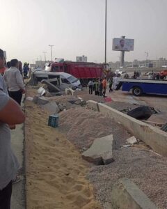 علي الفور أنتقل رجال الأمن لمكان الحادث، وتبين قيام سيارة نقل محملة بالرمال بدهس عدد من السيارات حال انتظارهم رفع حطام حادث آخر، وأسفر الحادث عن وفاة 4 أشخاص بينهم شقيقان، وتجري الأجهزة الأمنية التحقيقات لكشف ملابسات الحادث.