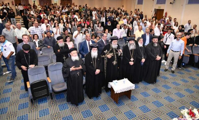 شهد البابا تواضروس الثاني، حفل التخرج الذي نظمه اجتماع القديس تيموثاوس للمغتربين التابع لخدمة قطاع الشباب بإيبارشية ٦ أكتوبر وأوسيم تحت عنوان “راشي” أي فرح.