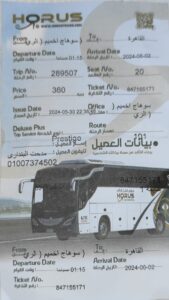 والقصة تبدأ عند عودتى من مدينة سوهاج حيث قررت عدم السفر بسيارتى لطول المسافة والإرهاق الذى أشعر به بسبب القيادة لمدة تزيد عن ست ساعات فقررت الاستعانة بإحدى شركات نقل الركاب المنتشرة على مستوى الجمهورية وتدعى حورس لنقل الركاب حيث قام قريب لى بترشيحها لحداثة مركباتهم وحُسن نظافتها كما ذكر وبالفعل قررت الحجز بها ولقربها لمكان أقامتى وحددت السفر على أعلى درجة بهذه الشركة وهى درجة “برستيج” وذلك بعد الثناء عليها من قبل موظف حجز المكتب لفرع الشركة بمدينة أخميم وكان سعر التذكرة هو مبلغ ٣٦٠ج وذلك يوم ٢٠٢٤/٦/٢ صورة ضوئية من تذكرة الحجز مدرج بها جميع البيانات المشمولة بالحجز وتم سفرى فى الوقت المناسب وللأسف الشديد أن سائق المركبة لم يراعى أبداً ظروف الركاب الصحية من كبار السن أثناء الرحلة فى التوقف فى الطريق