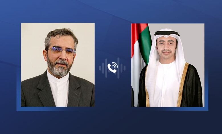حث وزير الخارجية الإماراتي الشيخ عبدالله بن زايد آل نهيان خلال اتصال هاتفي، اليوم السبت، مع وزير خارجية إيران المكلف علي باقري كني، العلاقات الثنائية بين البلدين.