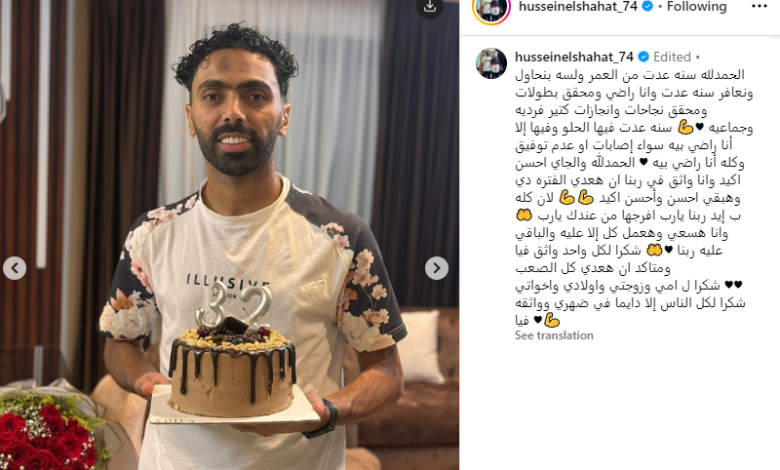 ونشر الشحات من خلال حسابه الرسمي على (إنستجرام) صورا من احتفاله بعيد ميلاده معلقًا: “الحمد لله.. سنة عدت من العمر ولسه بنحاول ونعافر، سنة عدت وأنا راضي ومحقق بطولات ومحقق نجاحات وإنجازات كتير فردية وجماعية، سنة عدت فيها الحلو وفيها اللي أنا راضي بيه سواء إصابات أو عدم توفيق وكله أنا راضي بيه”.