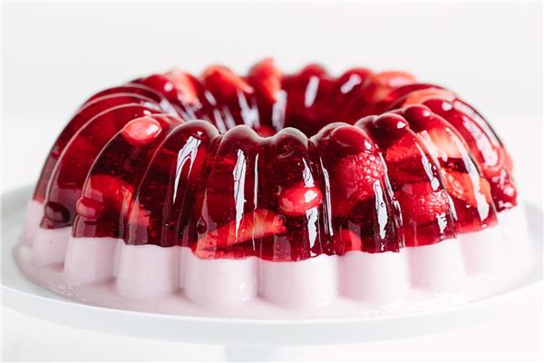 يوضع الجيلي (وهو بارد) برفق فوق الفواكه