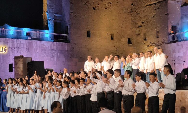 رئيس دار الأوبرا تلتقط صورة تذكارية مع كورال المواهب في مهرجان القلعة