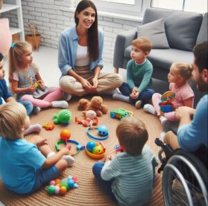 جعل الطفل يتحدث مع أهله ومع الأطفال ليتعلم منهم ويتشجع على الحديث.