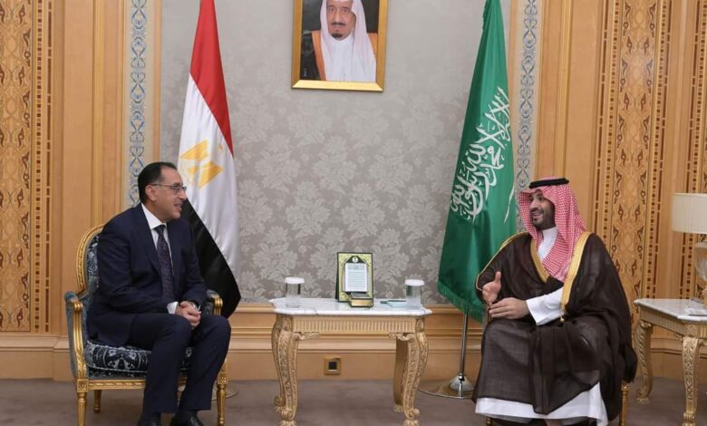 استقبل صاحب السمو الملكى، الأمير محمد بن سلمان، ولى العهد، رئيس مجلس وزراء المملكة العربية السعودية، مساء اليوم بالعاصمة السعودية الرياض، الدكتور مصطفى مدبولي، رئيس مجلس الوزراء، لبحث عدد من الملفات ذات الاهتمام المشترك، وذلك بحضور السيد/ أحمد كجوك، وزير المالية، والمهندس/ حسن الخطيب، وزير الاستثمار والتجارة الخارجية، والسفير/ أحمد فاروق، سفير مصر لدى الرياض، فيما حضر اللقاء من الجانب السعودي كل من: صاحب السمو الأمير فيصل بن فرحان بن عبدالله، وزير الخارجية، والدكتور عصام بن سعيد، وزير الدولة عضو مجلس الوزراء لشؤون مجلس الشورى، والدكتور ماجد القصبي، وزير التجارة، والمهندس/ خالد الفالح، وزير الاستثمار، والسيد/ محمد الجدعان، وزير المالية، والسيد/ ياسر الرميان، محافظ صندوق الاستثمارات العامة، والسفير/ صالح الحصيني، سفير خادم الحرمين الشريفين لدى مصر.