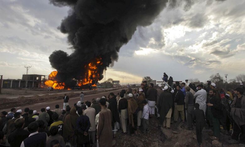 وأظهر مقطع فيديو صوره أحد المارة فيما يبدو أشخاصا يجمعون الوقود من الشاحنة قبل انفجارها.