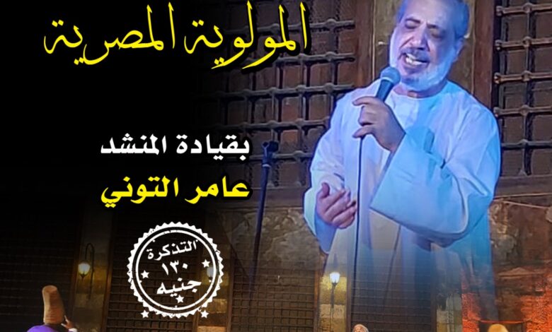 يقدم قطاع صندوق التنمية الثقافية برئاسة المعماري حمدي السطوحي، عرضا جديدا من عروض فرقة ( المولوية المصرية) بقيادة الفنان دكتور عامر التوني، وذلك في الثامنة مساء الخميس ٢٤ اكتوبر بمركز إبداع قبة الغوري بشارع الأزهر .