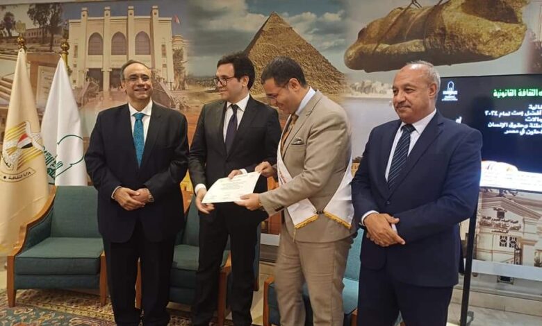 عقدت احتفالية توزيع جوائز مسابقة أفضل بحث لعام 2024 لشباب الباحثين فى مصر فى مجالات: (ثقافة القانون، المواطنة، حقوق الإنسان)، والتى نظمتها لجنة ثقافة القانون والمواطنة وحقوق الإنسان، بحضور الدكتور أحمد هنو؛ وزير الثقافة، والدكتور أسامة طلعت؛ الأمين العام للمجلس الأعلى للثقافة،