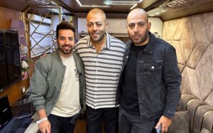 حضر تامر عاشور بكامل اناقته مرتديا ملابس “كاجوال”بصحبة شقيقه ومدير أعماله وكان في استقبالهما أدهم بكري منظم الحفل.