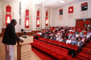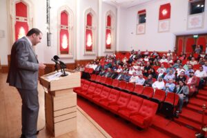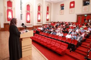 ثم قرأ نصا بعنوان “آخر الأنباء أنت”، قدم فيها لمحات من معاني الحب والغزل، واستخدم فيه الإحالات والدلالات بشكل يجمع بين البلاغة والبساطة، ومما جاء فيها: