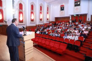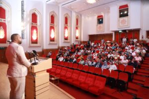 ثم قرأ قصيدة أخرى، بعنوان “لعينيك”، عبرت عن مشاعر الحب وما يلاقيه الأحبة من لوعة وعتاب وما يتطلعون إليه من أحلام السعادة في خضم أحزانهم، وقد قال فيها: