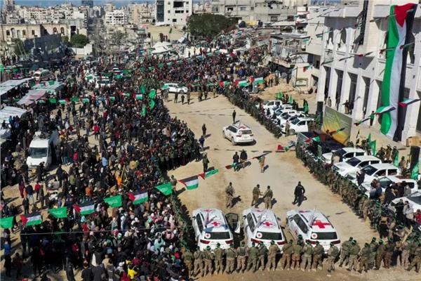 وأضافت الحركة في بيان: “عملية التسليم اليوم أمام منصة تحمل صور القادة الشهداء الضيف وإخوانه أعضاء المجلس العسكري، رسالة عهد ووفاء، أن رجال القسام باقون وسيكملون المشوار”، وفقًا للبيان، بحسب موقع «روسيا اليوم» الإخباري.