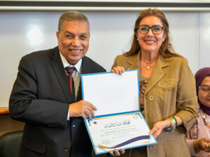 وفي ختام الحفل، الذي أقيم بفندق هيلتون جرين بلازا، قامت الدكتورة نائلة عمارة بتكريم أعضاء لجان التحكيم، تقديرًا لمشاركتهم ودعمهم لمشروعات الطلاب.