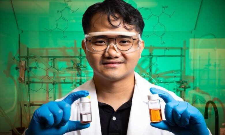 ابتكر باحثون في الهندسة الكيميائية بجامعة أركنساس، حلاً بيئياً منخفض التكلفة لمعالجة مشكلة أصباغ الآزو التي تشكل نحو 60–70% من صناعة المنسوجات التجارية لإنتاج ألوان زاهية للملابس. ويعتمد الحل على استخدام اللجنين، وهو بوليمر نباتي ينتج كناتج ثانوي لصناعة الورق واللب.