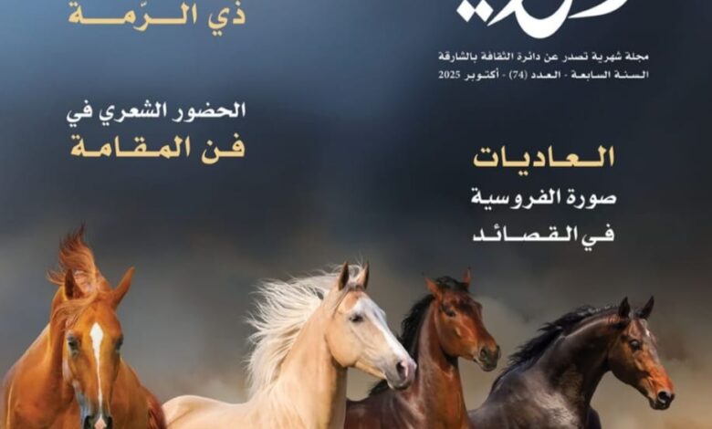 صدر عن “بيت الشعر” في دائرة الثقافة بالشارقة العدد 74 لشهر أكتوبر من مجلة “القوافي” الشهرية؛ المتخصّصة بالشعر الفصيح ونقده – في عامها السابع- التي تحتفي بالمواضيع ذات الصلة به بلاغةً ولغةً وتراثًا. كما تحتفي بالشعراء من مختلف العصور.