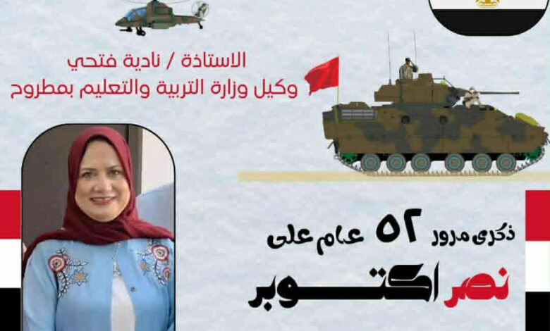 وأكدت وكيل وزارة التربية والتعليم بمطروح أن العاملين بالمنظومة التعليمية يقدمون التحية والعرفان لشهداء القوات المسلحة الذين سطروا في نصر أكتوبر 1973، منذ أكثر من نصف قرن، ملحمةً خالدة في الشرف والكرامة والثقة بالله وبالنفس.