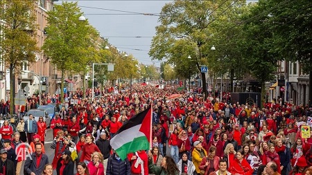 وذكر مراسل الأناضول، أن العديد من منظمات المجتمع المدني الدولية والمحلية نظمت مظاهرة حاشدة في ميدان المتاحف وسط أمستردام، بشعار “الخط الأحمر”.