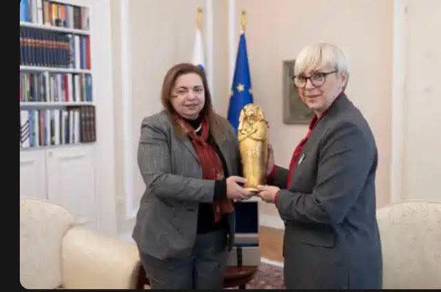 استقبلت رئيسة جمهورية سلوفينيا ناتاشا بيرس موسار نهلة الظواهري، سفيرة جمهورية مصر العربية لدى سلوفينيا، حيث تسلّمت الدعوة الموجّهة لسيادتها من السيد الرئيس عبد الفتاح السيسي، رئيس الجمهورية، للمشاركة في حفل افتتاح المتحف المصري الكبير في الأول من نوفمبر المقبل.