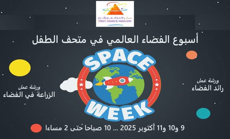 يختتم مركز العلوم التابع لمركز الطفل للحضارة والإبداع متحف الطفل إحدى المنارات الثقافية بجمعية مصر الجديدة ، صباح غد فعاليات اسبوع الفضاء العالمى الذي نظمه المركز على مدار أسبوع مشاركا ٩٠ دولة حول العالم احتفالاتهم باسبوع الفضاء العالمى وهو إحتفال دولى بالعلوم والتكنولوجيا ومساهتهما فى تحسين حالة الإنسان