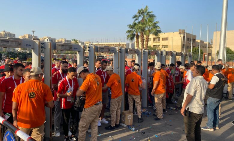 وانتشرت القوات المكلفة بالتأمين في محيط الاستاد، حيث كثّفت الأطقم الأمنية التابعة للمجموعة الإفريقية وجودها لتأمين المداخل الرئيسية وتنظيم دخول الجماهير، مع تنفيذ إجراءات صارمة لمنع إدخال أي ممنوعات خاصة الشماريخ والأدوات التي قد تؤثر على سلامة الحضور أو سير المباراة.