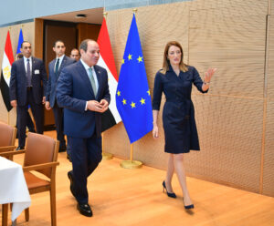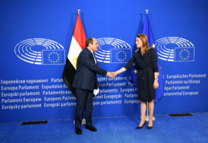 الرئيس السيسي يلتقي رئيسة البرلمان الأوروبي في بروكسل: اتفاق غزة ما كان ليتحقق لولا جهود مصر