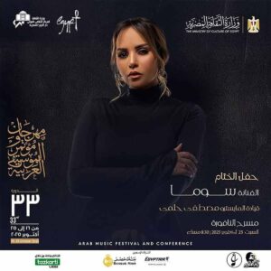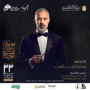 تُختتم فعاليات الدورة 33 من مهرجان ومؤتمر الموسيقى العربية التى تحمل إسم كوكب الشرق أم كلثوم بمناسبة مرور 50 عاماً على رحيلها وتنظمها وزارة الثقافة عبر دار الأوبرا المصرية برئاسة الدكتور علاء عبد السلام، ويديرها المايسترو تامر غنيم ونائبه المايسترو الدكتور محمد الموجى بإشراف أمانى السعيد مستشار رئيس الأوبرا فى التاسعة مساء السبت 25 أكتوبر على مسرح النافورة .