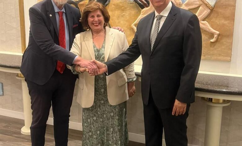 أكد نائب الوزير على الروابط التاريخية والثقافية التي تجمع بين شعوب مصر وقبرص واليونان، مثمناً القوة التي تتصف بها العلاقات الثلاثية بين الدول الثلاث وتطورها بشكل إيجابي على مختلف الأصعدة، كما أكد على مواصلة الدولة المصرية مساعيها نحو إحياء الروابط الاجتماعية والتاريخية للشتات مع كل من قبرص واليونان، وذلك من خلال تنظيم الفعاليات المشتركة والزيارات الجماعية، مشيراً إلى عزمه العمل، جنباً إلى جنب مع المسئولين في كل من قبرص واليونان، على تعزيز وتوسيع هذا المجال من التعاون المرتبط بشكل مباشر بملف الدبلوماسية العامة، حيث يأتي هذا الاجتماع في سياق الجهود التي تقوم بها مصر لتنشيط مبادرة “إحياء الجذور” (نوستوس)، والتي تم تدشينها منذ عدةً سنوات وفقاً لرؤية رئيس الجمهورية، لاسيما في ضوء هدفها النبيل المتمثل في زرع بذور التعاون والارتباط بمصر بين الجيلين الثاني والثالث من أبناء وأحفاد الجاليات التي كانت تعيش في كل من مصر وقبرص واليونان.