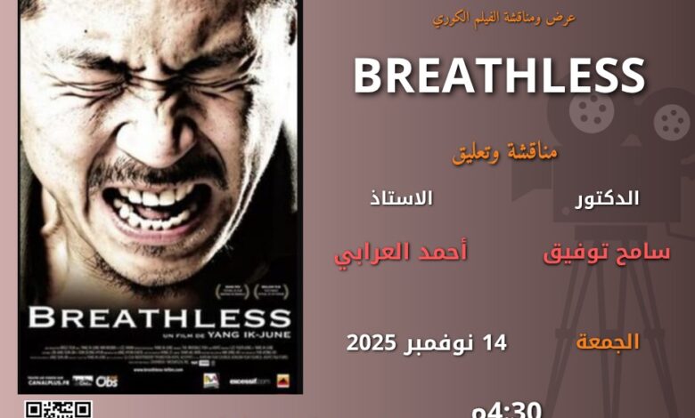 عرض ومناقشة الفيلم الكورى “Breathless” فى مكتبة مصر الجديدة العامة غدا الجمعة