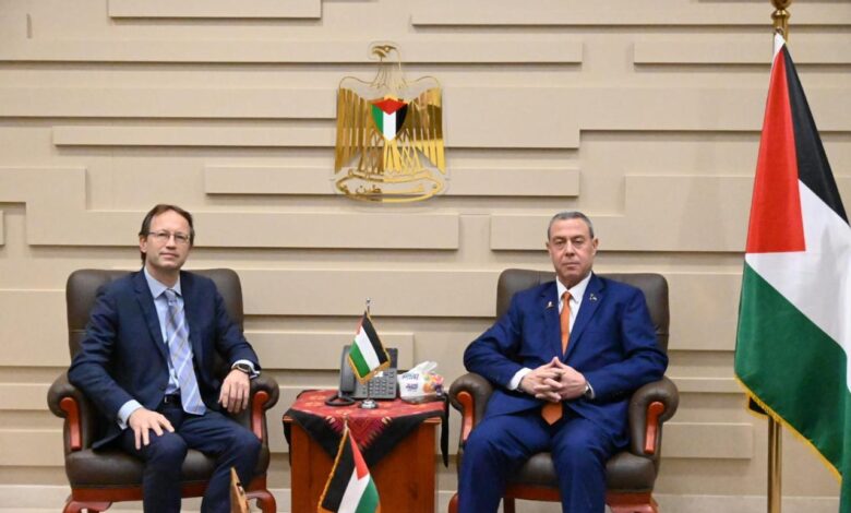 رحب السفير دياب اللوح بالزيارة الكريمة ، مهنئا نظيره الأسباني بتسلم مهام بعثته الجديدة إلى جمهورية مصر العربية ومؤكدا على متانة الروابط التاريخية العميقة بين البلدين ، ومعربا عن تقدير دولة فلسطين للمواقف السياسية لأسبانيا الداعمة لحل الدولتين وتجسيد الدولة الفلسطينية ، ورفض بلاده لسياسة الاحتلال وإجراءاته وانتهاكاته المستمرة سواء في قطاع غزة أو الضفة الغربية بما فيها القدس ، والمتوج بقرار إسبانيا الاعتراف بدولة فلسطين ، وكذلك جهود أسبانيا في الاتحاد الأوروبي وفي المحافل الدولية في دعم تنفيذ حل الدولتين وفق قرارات الشرعية الدولية وكذلك انضمامها للشكوى المرفوعة من جنوب إفريقيا أمام محكمة العدل الدولية، في قضية الإبادة الجماعية بحق شعبنا في قطاع غزة، واستمرار العمل على إنفاذ المساعدات الإنسانية.