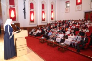 بعد ذلك قرأت الشاعرة أميرة توحيد قصائدها، والتي قدمت نصا بعنوان “أنغام المجد” رفعته إلى الإمارات، وتغنت فيه بشموخها وعزتها وأخلاق أهلها، فقالت: