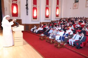ثم قرأ نصاً آخر أهداه لصاحب السمو الشيخ الدكتور سلطان بن محمد القاسمي، عضو المجلس الأعلى حاكم الشارقة، واصفا في أبياته كرمه وجوده وما قدمه من مبادرات إنسانية وثقافية امتد أثرها من الشارقة إلى كل العالم العربي، وقال فيه: