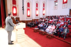 واختتم الأمسية الشاعر طارق الجنايني، الذي قرأ قصيدة في مديح اللغة العربية عنوانها “بنت النور”، خاطبها فيها بأبيات مزجت بين العاطفة والبلاغة، قال فيها: