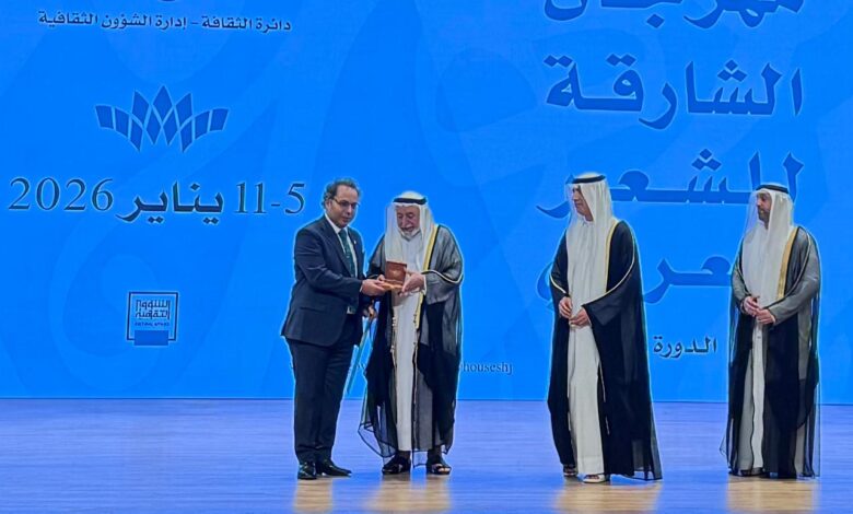علي هامش حفل إفتتاح أعمال مهرجان الشارقة للشعر العربي بقصر ثقافة الشارقة كرم صاحب السمو الشيخ الدكتور سلطان بن محمد القاسمي عضو الإتحاد حاكم الشارقة مساء اليوم الأثنين الشاعر الدكتور أحمد بلبولة عميد كلية دار العلوم بجامعة القاهرة بإعتباره شخصية المهرجان في دورته الثانية والعشرين لهذا العام .