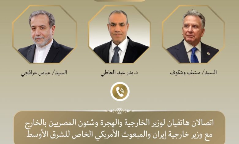 أجرى دكتور بدر عبد العاطي وزير الخارجية والهجرة وشئون المصريين بالخارج اتصالين هاتفيين مع “عباس عراقجي” وزير خارجية إيران، و “ستيف ويتكوف” المبعوث الأمريكي الخاص للشرق الأوسط موخراً، و تناولت الإتصالات المستجدات بالمنطقة في ظل تصاعد حدة التوتر بالإقليم.