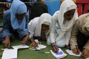 أما الفعالية الثانية فجاءت في صورة ورشة رسم تفاعلية بعنوان “الدوائر المجنونة”، أدارها الفنان صدام العدلة، بمشاركة أكثر من 15 طفلًا من الجالية السودانية بالقاهرة، إلى جانب عدد من أطفال المعرض. وأوضح الدكتور محمد يسن، مدير أكاديمية طفولة العربية للتدريب وبناء القدرات (ACTA) التابعة للمجلس العربي للطفولة والتنمية، أن الورشة نُفذت بالتعاون مع جمعية أصدقاء الأسرة والطفل السودانية (مبادرة مناصري أطفال السودان بمصر)، وذلك في إطار جهود المجلس لدعم حق الأطفال في المشاركة والتعبير عن آرائهم من خلال الفن، بما يسهم في تنمية قدراتهم الإبداعية وتعزيز مهاراتهم الفنية.