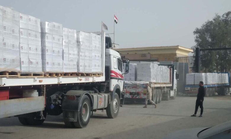 152 شاحنة مساعدات تغادر معبر رفح البري إلى كرم أبو سالم لإغاثة قطاع غزة