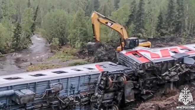 وانتهى المطاف بأربع عربات محملة بالبروبان السائل في المياه، بينما سقطت عربتان أخريان محملتان بشحوم غذائية على ضفاف النهر.