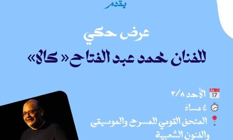 الأحد.. عرض حكي للفنان محمد عبدالفتاح في المتحف القومي للمسرح