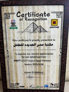 حققت مكتبة مصر الجديدة للطفل إنجازًا جديدًا بمشاركة أطفالها في مسابقة First Lego League Explore ضمن دورة First Lego للروبوت، حيث فاز فريق المكتبة وحصلت المكتبة على شهادة تقدير تقديرًا لإبداعات الأطفال ومجهوداتهم في البحث العلمي، وذلك برعاية الدكتورة سهام الجوهرى رئيس مجلس إدارة جمعية مصر الجديدة التابع لها المكتبة.