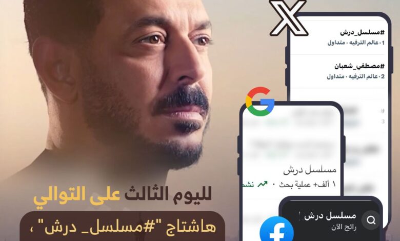 لليوم الثالث على التوالي، تصدر هاشتاج “#مسلسل_درش” تريند موقع إكس وفيسبوك، والأكثر بحثًا على جوجل بعد عرض الحلقة الثالثة من المسلسل.