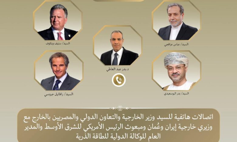 وشملت الاتصالات كلاً من بدر بن حمد البوسعيدي وزير خارجية سلطنة عمان، وعباس عراقجي وزير خارجية إيران، ورفائيل جروسي، إلى جانب ستيف ويتكوف المبعوث الأمريكي الخاص للشرق الأوسط، وذلك في إطار تنسيق الجهود الإقليمية والدولية الرامية إلى احتواء الأزمة.