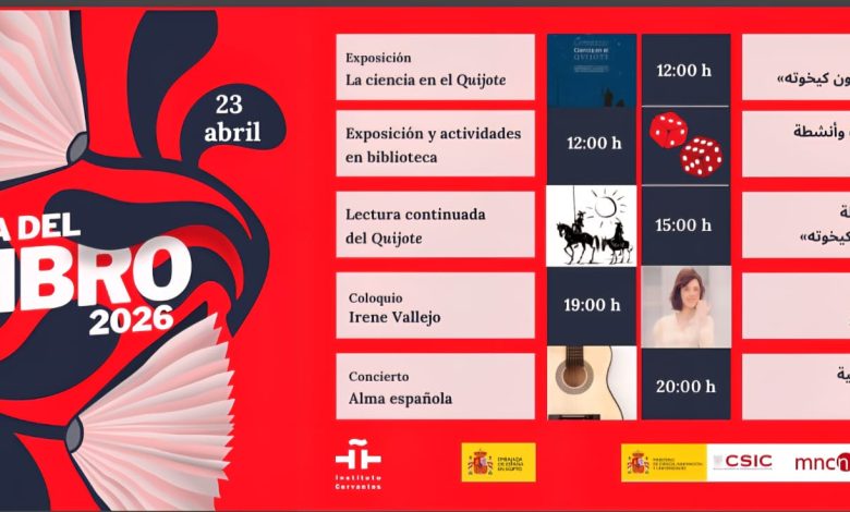 يحتفل معهد ثربانتس بالقاهرة (المركز الثقافي الإسباني) باليوم العالمي للكتاب 2026، الذي يوافق الخميس 23 أبريل، من خلال برنامج ثقافي متنوع يجمع بين القراءة الجماعية، والأنشطة الترفيهية، وعرض موسيقي، فضلاً عن حوار ثري مع الكاتبة الإسبانية إيريني باييخو حول كتابها الشهير “اللامتناهي في بردية”، والذي يستعرض رحلة تاريخ الكتب وارتباطها بمدينة الإسكندرية كمحطة رئيسية في هذه الرحلة.