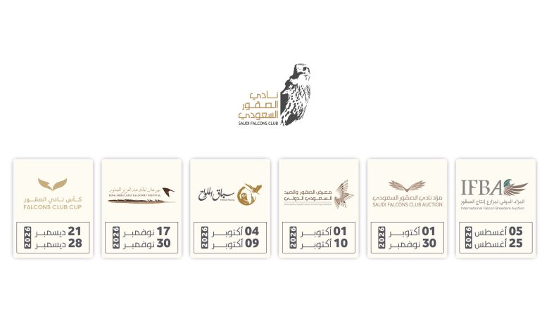 وأوضح نادي الصقور السعودي، في بيان، أن مواعيد فعالياته الرئيسية لعام 2026، تتضمن مهرجانًا، ومزادين، ومعرضًا، وسباقًا للملواح، وبطولة كأس نادي الصقور، وتستهدف فعاليات النادي التي تستمر نحو 120 يومًا تعزيز الموروث الوطني، وتأكيد حضوره محليًا ودوليًا، إلى جانب دعم قطاع الصقور وتنمية الهوايات المرتبطة بها، وتعزيز مكانة السعودية كرائدة عالمية وموطن للصقور والصقارين.