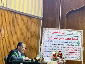 وتكونت لجنة المناقشة والحكم على الرسالة من السادةالأساتذةأ.د. عبدالراضي محمد عبدالمحسن عميد كلية دار العلوم السابق ورئيس قسم الفلسفة الإسلامية مشرفا وأ.د.طارق سيد توفيق مشرفًا مشاركًا الأستاذ بكلية الآثار – جامعة القاهرة و أ.د. عبد الحميد عبد المنعم مدكور أستاذ الفلسفة الإسلامية بالكلية وأمين عام مجمع اللغة العربية مناقشًا داخليًّا و أ.د.محمد شحاتة إبراهيم مناقشًا خارجيًّا الأستاذ بكلية أصول الدين جامعة الأزهر.