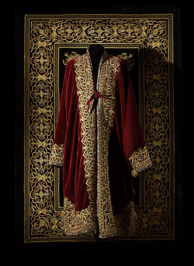 و يظهر المعرض عظمة النهضة التي أنتجت روائع الأعمال الحرفية في القرن التاسع عشر وبداية القرن العشرين، وهي الفترة المؤسسة للهوية الأوزبكية المعاصرة. وتؤدي المنسوجات في هذه الأعمال، كما في كل مكان من العالم الإسلامي، دورا حاسما: فهي تكشف وتعطي صورة معبرة للمجتمع من الداخل. ويحتل التطريز البخاري، على وجه الخصوص، مكانة خاصة بين العديد من أشكال الفن في أوزبكستان. وصل التطريز المذهب إلى ذروته وشهرته في عهد الأمير موزاك خان (1860-1885) من حيث تقنيات الإنتاج والجودة ولا سيما الإبداع الفني. فثمة عدد كبير من المنتجات الرائعة والأثرية — معاطف، وفساتين، وأغطية الرأس، والسروج متعددة الألوان المذهبة – وكان معدًا خصيصًا لأفراد البلاط والهدايا الدبلوماسية، ويصنع في ورشة فنية خاصة بالأمير تشهد على أسلوب حياته الفخم.