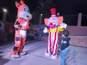 كما تم عرض مسرح عرائس للفنان هانى فهمى قدم فقرات “الكتكوت الفصيح، بكار، البلياتشو، بو، شيرك الشرير، الحصان، نمور”.