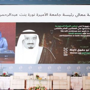 ومن جانبه، وجه الدكتور يوسف بن عبدالله البنيان، وزير التعليم في المملكة العربية السعودية، كلمة إلى المؤتمر، ألقاها نيابة عنه الدكتور ناصر بن محمد العقيلي، وكيل الوزارة للبحث والابتكار، أشاد خلالها بتنظيم المؤتمر، واستعرض ما تشهده المملكة العربية السعودية من مبادرات وبرامج في إطار رؤية 2030، التي تؤكد أهمية دور المرأة وحضورها في المراكز القيادية.