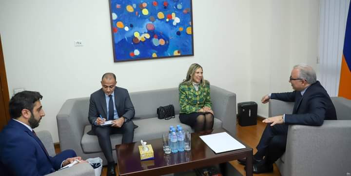 قدمت ًسيريناد سليمان جميل ً ، سفيرة مصر لدى جمهورية أرمينيا أوراق اعتمادها الي نائب وزير الخارجية مناتساكان سفاريان وهنأ نائب الوزير السفيرة جميل بمناسبة تعيينها وتمنى لها العمل المثمر والنجاح في تنفيذ مهمتها الهامة ، معربا عن إيمانه بأن السفيرة ستساهم في مزيد من توسيع وتعزيز العلاقات الودية بين البلدين.