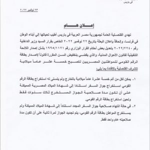 اعلنت القنصلية المصرية بفرنسا ،بإستقبال استفسارات المصريين بأنحاء فرنسا ،واضحت القنصلية بعض النقاط التى طرحها البعض حول المعاملات القنصلية المختلفة والاوراق المطلوبة والاجراءات، بتوضيح الاجابات على بعض الاسئلة الشائعة الواردة