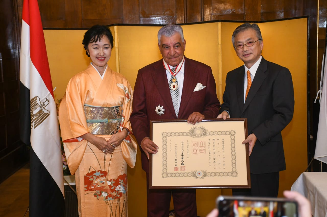 تسلم الدكتور زاهي حواس عالم المصريات ووزير الآثار الأسبق وسام الشمس المشرقة ،نجم ذهبي وفضي ” The Rising Sun, Gold and Silver Star “، من الحكومة اليابانية والتي أعلنت في نوفمبر الماضي عن منحها هذا الوسام له نظرا لإسهاماتهما البارزة فى تعزيز العلاقات بين مصر واليابان وتنمية التبادل الثقافي والأكاديمي.